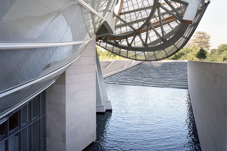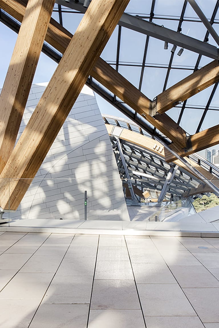 Icône d’architecture contemporaine, la Fondation Louis Vuitton est conçue comme un navire de verre posé entre ciel et canopée.
